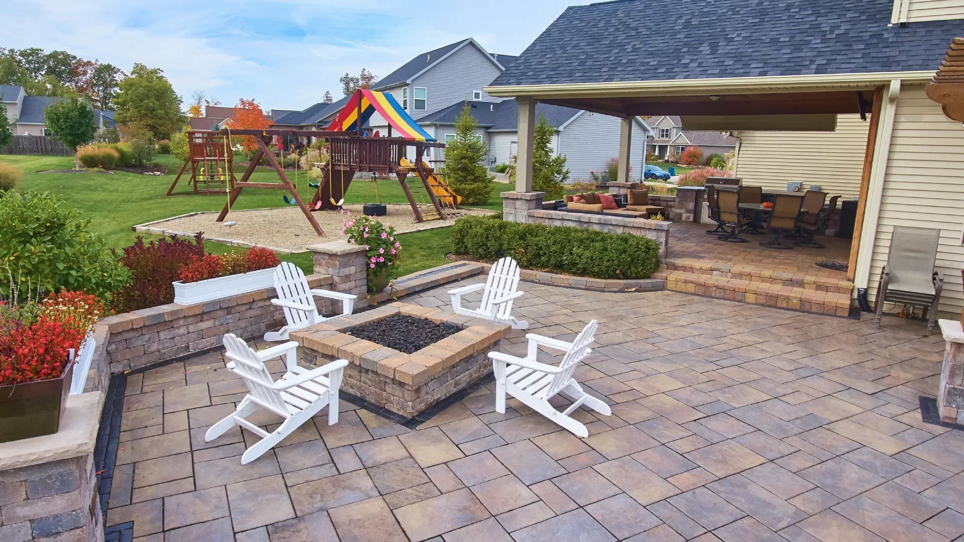 · Patio, walkway, and retaining wall construction that holds steady through rain and temperature changes