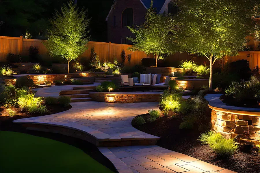 Lighting also helps highlight the features people already invested in, like stonework, planting beds, and trees. When the layout is done correctly, the yard feels more usable without looking overlit.