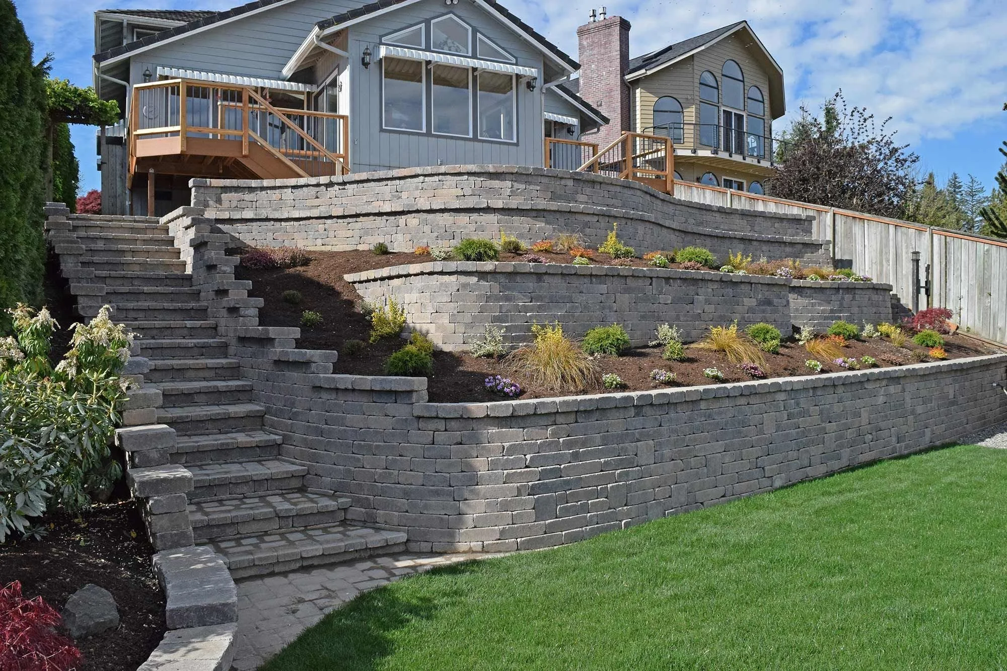 Many properties in this area deal with runoff moving downhill toward patios, steps, or foundations. A properly built wall helps control that movement while giving the yard a cleaner shape and more defined outdoor sections